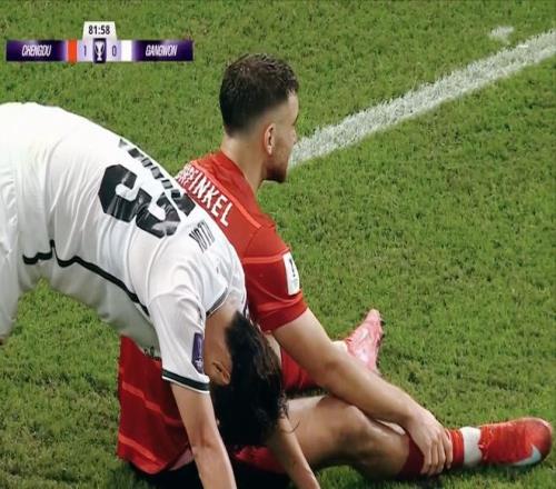 从比赛开始,客场作战的江原FC就展开了积极的前场逼抢,而右边路三个人之间的配合很默契,数次突破至底线形成传中。而成都蓉城在对手压迫下,很难组织起有效的进攻,费利佩、罗慕洛拿球的机会都被限制的非常厉害。
