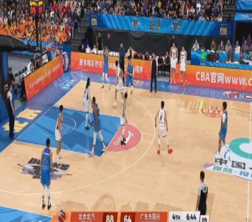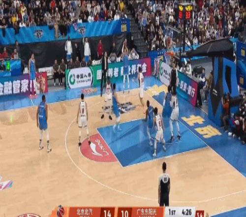 第四节,胡明轩连续得分的时间段,胡明轩再次展示自己的个人能力,底角接到赵睿的助攻后,稳稳三分命中,杜锋立即叫停比赛。