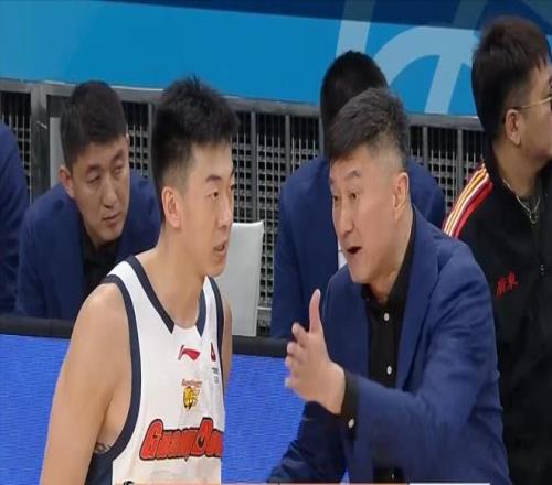 广东队运动战迟迟未开,8分08秒,杰克逊底角干拔陈家政飚进三分,胡明轩出现致命失误,杜锋换回萨姆纳,萨姆纳极限救球“助攻”戴昊上篮得手,广东落后14分,情况非常不妙。
